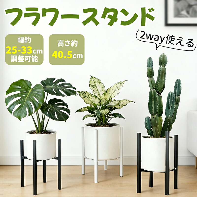 【幅25〜33cmまで調節可能】スタンド幅を調整できる設計で、鉢のサイズや形状に合わせて柔軟に対応。植物の成長や鉢替え時にも買い替え不要で、長く使えるフラワースタンドです。