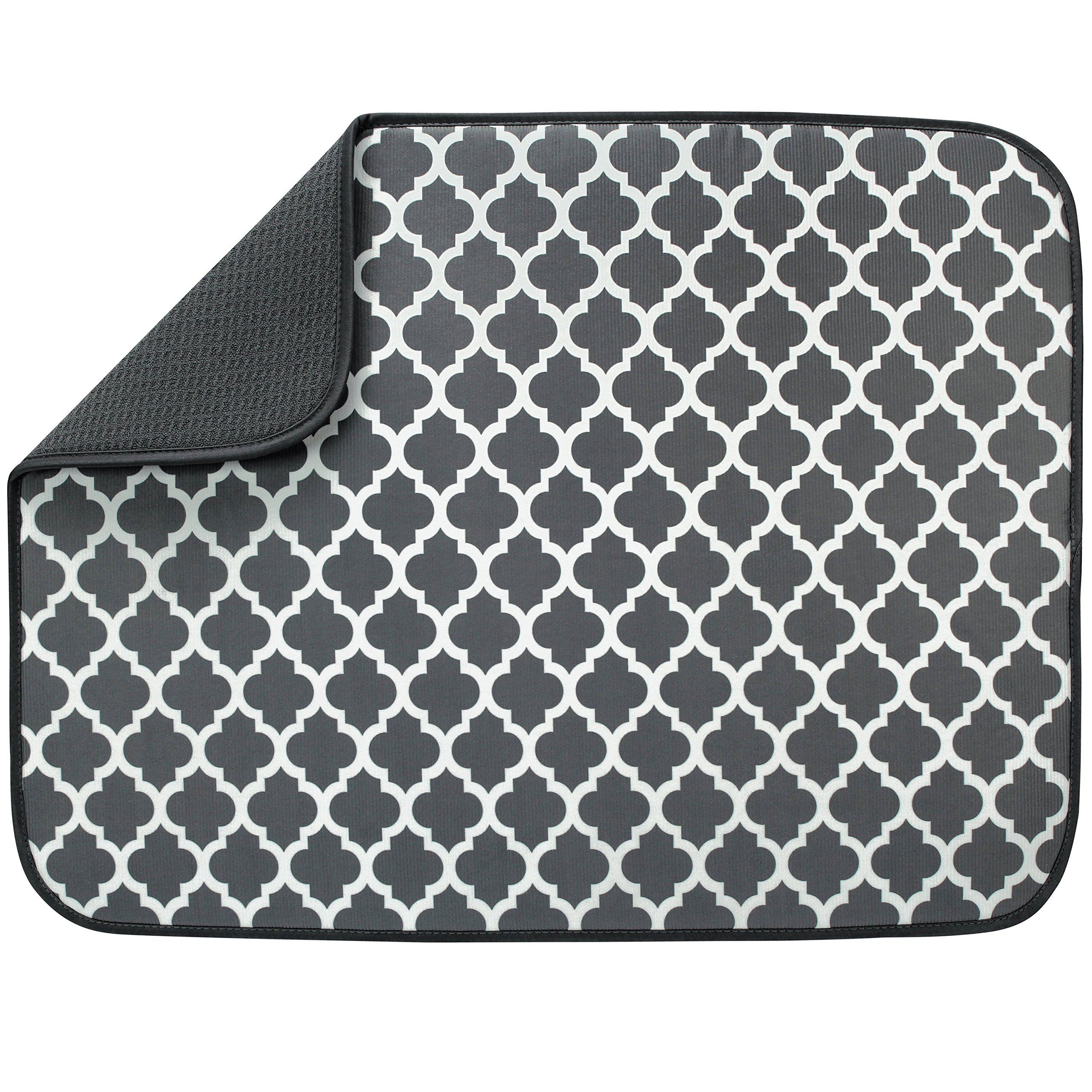 (Pewter Gray Trellis) S & T 449301 Extra Large Dish Drying Mat, 46cm x 60cm, Pewter Grey Trellis S&T INC. Dish Drying Mat for Kitchen, Absorbent, Reversible XL Microfiber Dish Mat, 18 Inch x 24 Inch, Pewter Grey Trellis
