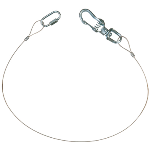 器具の落下防止の為に、器具のアームと吊りパイプに巻き付けて使用するワイヤです。