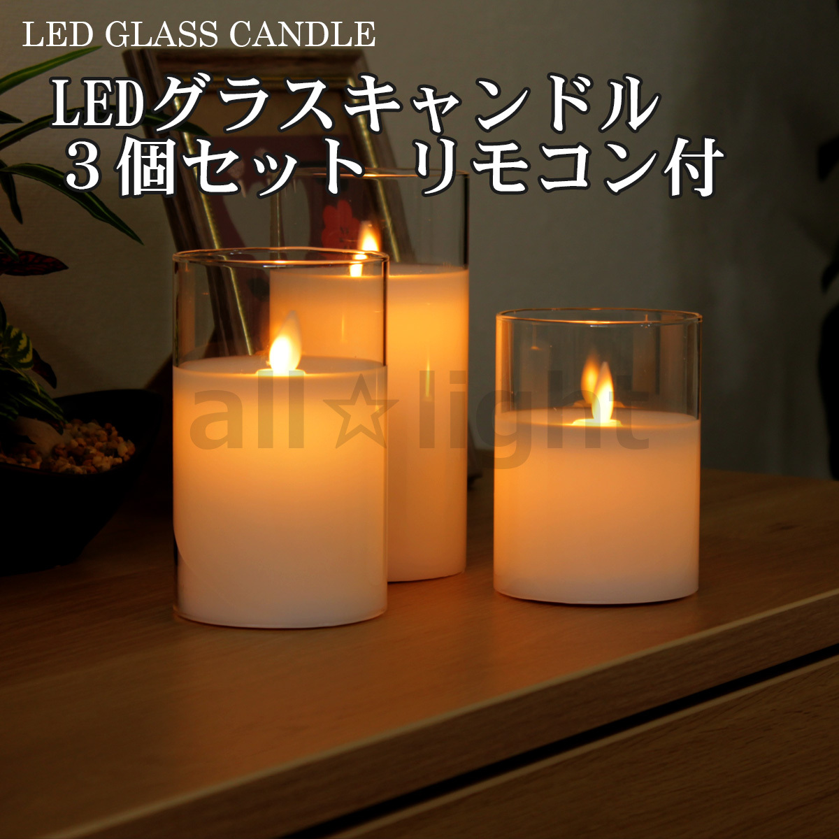 ★ LEDグラスキャンドル LEDキャンドルライト ホワイト 明るさ調節 タイマー付 揺らぐ 電池別売 リモコン付 [3個入り]ロウソク LED GLASS CANDLE WHITE