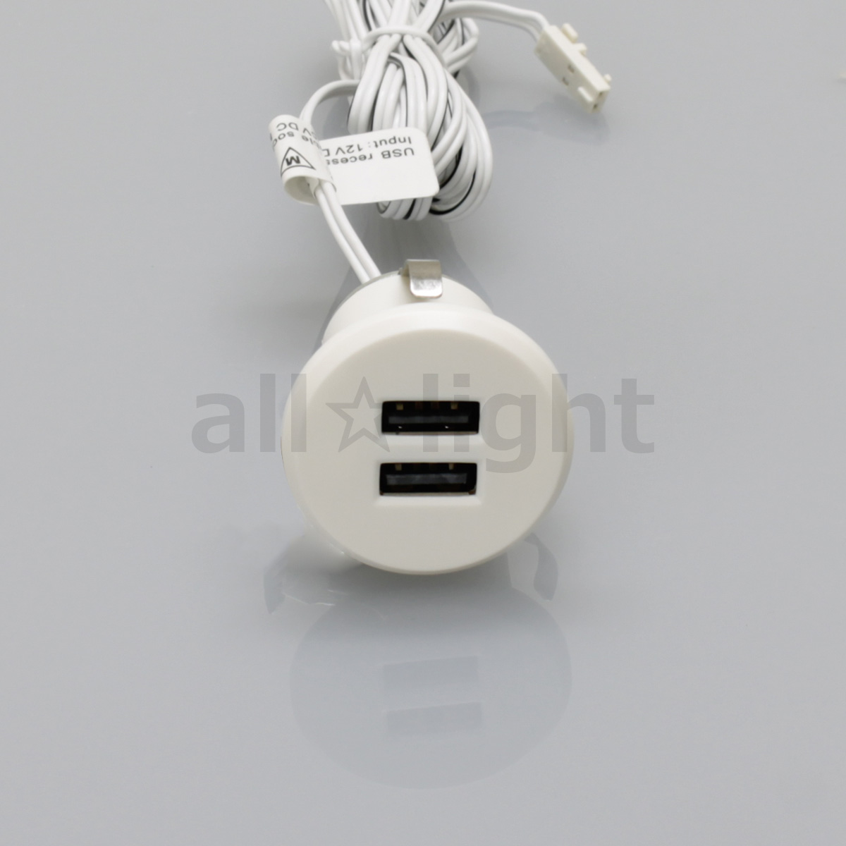テクノパーツ 家具用コンセント(什器用) USBコンセント(2口) 丸穴 コード1.5m 5V2.1A ワンタッチ式 専用アダプター付(コード1.5m) 白(ホワイト) TPU-USB2R