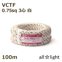 オーナンバ ビニルキャブタイヤ丸形コード VCTF 3心 0.75sq 白色 電線 【100m】 VCTF 3C 0.75sq 白色