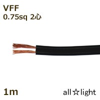 オーナンバ ビニル平形コード VFF 2心 0.75sq 黒色 電線 【1m】 VFF 2C 0.75sq 黒色 ≪5mまでクリックポスト対応≫