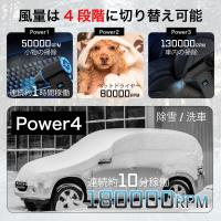 超強力、最大180000RPMの風量で車に積もった雪や洗車後の水滴を吹き飛ばします。