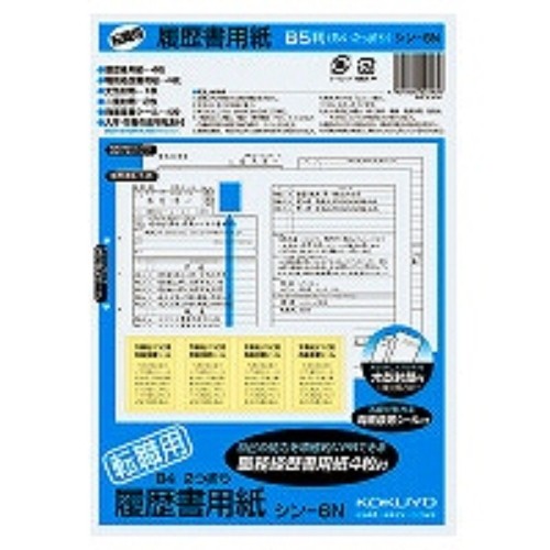 コクヨ 履歴書・職務履歴書 各4枚 転職用 B5サイズ(B4二つ折り) シン-6/メール便送料無料