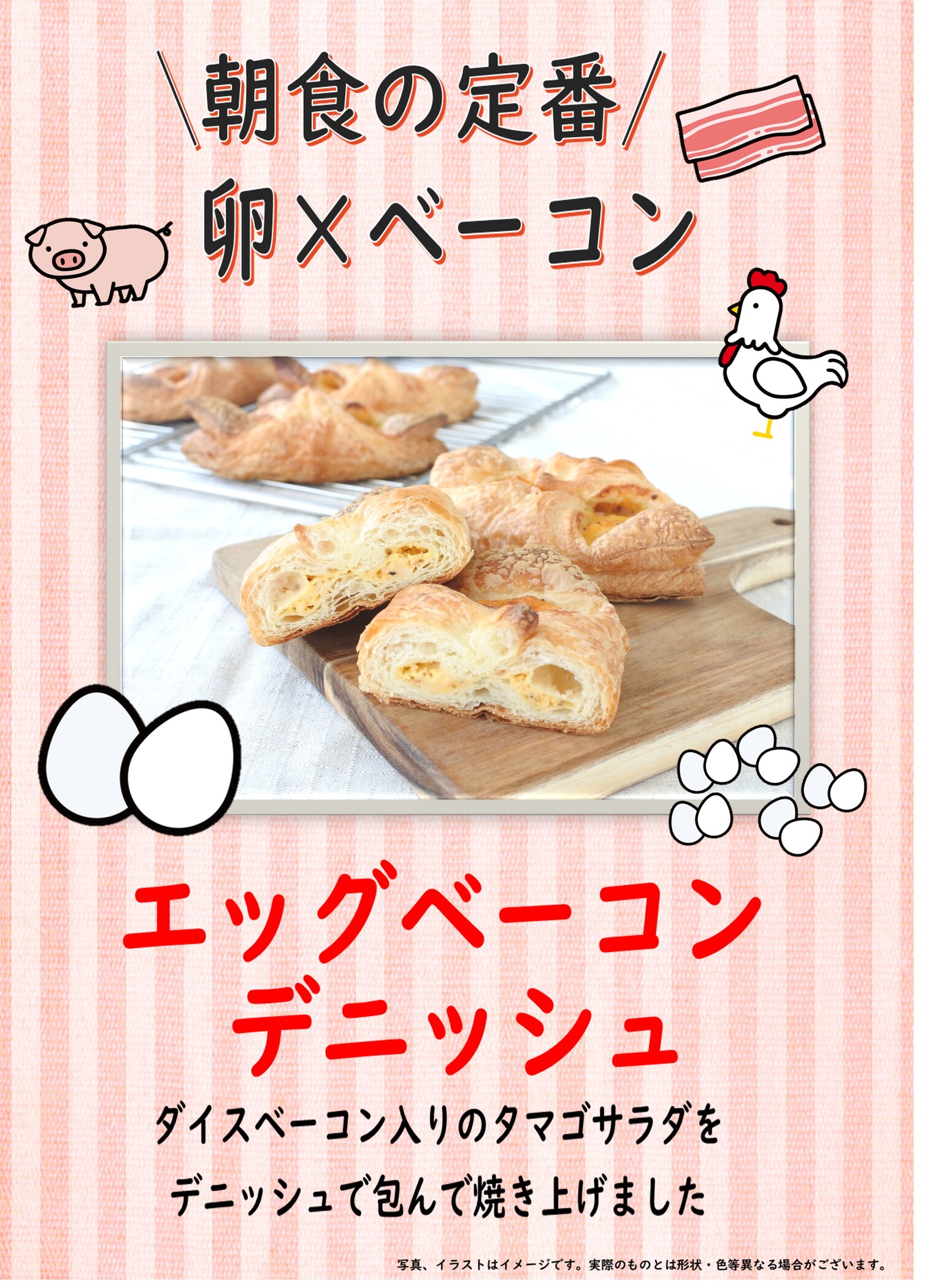 ■原材料 小麦粉(国内製造)、タマゴサラダ、マーガリン、ベーコン、ぶどう糖果糖液糖、ショートニング、パン酵母、でんぷん、食塩、コンソメパウダー(食塩、デキストリン、チキンパウダー、たんぱく加水分解物、香辛料、野菜パウダー)、黒こしょう、卵/乳化剤、加工デンプン、グリシン、酢酸(Na)、調味料(アミノ酸等)、増粘剤(増粘多糖類、アルギン酸Na)、カゼインNa、リン酸塩(Na)、香料、pH調整剤、酸化防止剤(ビタミンC、ビタミンE)、くん液、酵素、ビタミンC、着色料(カラメル、カロチノイド、クチナシ赤色素)、ショ糖エステル、リゾチーム、発色剤(亜硝酸Na)、香辛料、(一部に卵・小麦・乳成分・大豆・鶏肉・豚肉・りんご・ゼラチンを含む)