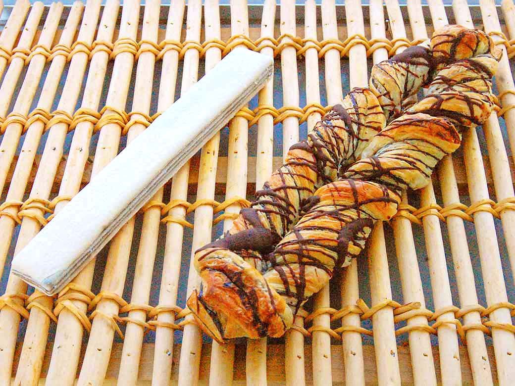 ■コメント ベルギー産のチョコレートを使用したチョコクリームを折り込んだチョコデニッシュをツイスト整形しました。