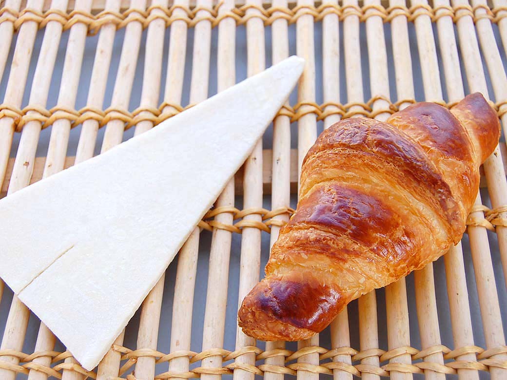 ■コメント バター入りマーガリンを折り込んだクロワッサンシートです。ウインナーやチョコを巻くなどクロワッサンのバラエティができます。