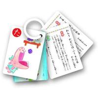 付属のリングでとめると、「持ち運びカード辞典」に変身します。お出かけ先でも遊びながら、ことわざの意味と使い方のシチュエーションが簡単に覚えられます。