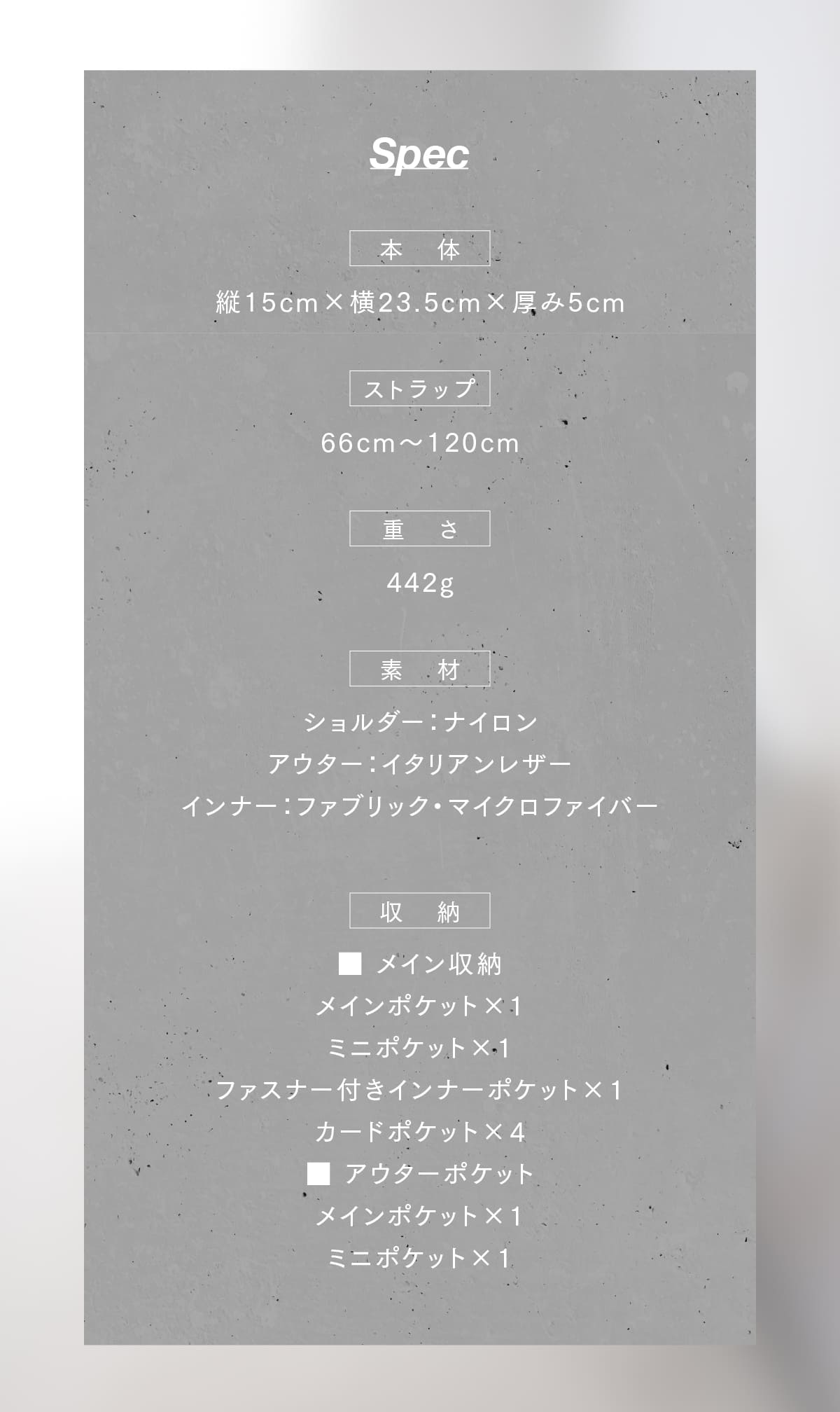 本体:縦 15cm × 横 23.5cm × 厚み 5cm 重さ 442g
