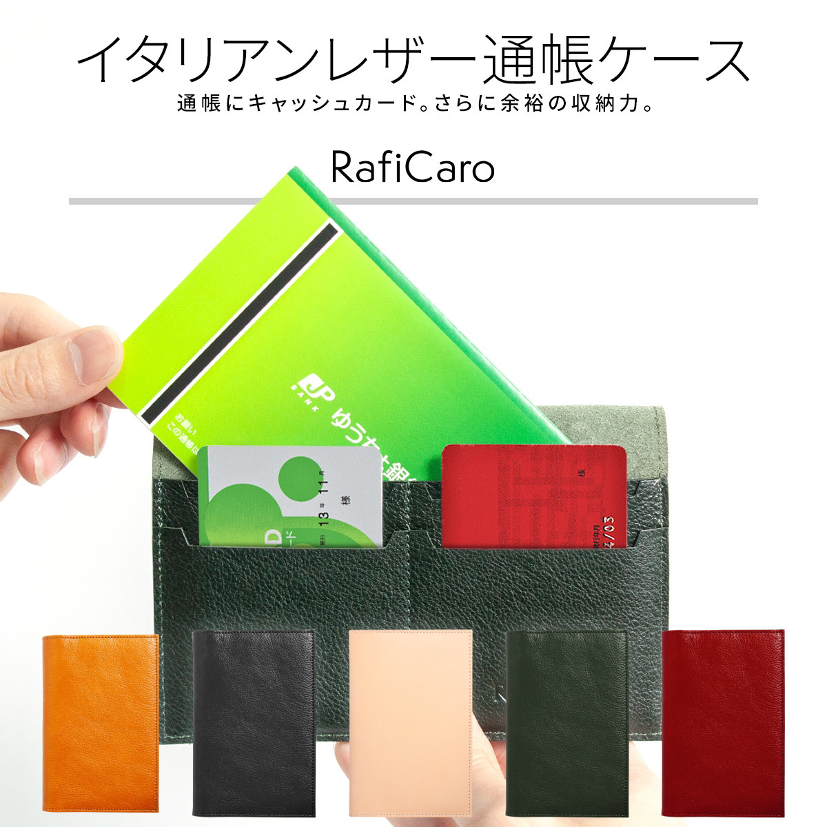 通帳ケース 本革 カード 8枚 収納 大容量 薄型 牛革 ヌメ革 シンプル レザー マルチケース キャッシュカード 銀行 手帳 カバー RafiCaro
