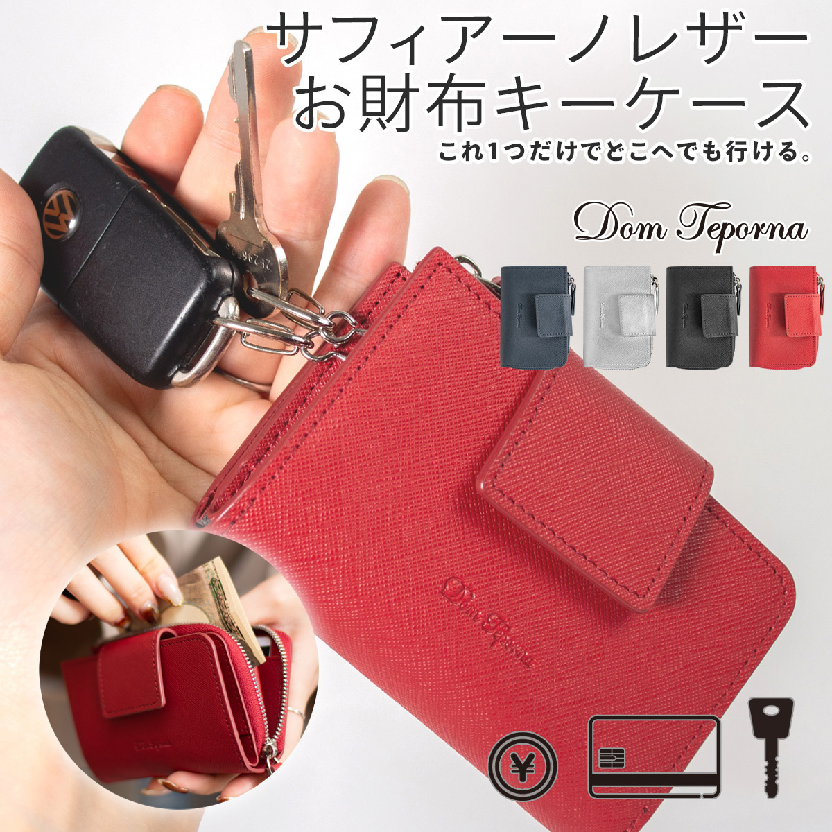 キーケース スマートキ メンズ レディース ブランド 革 牛革 カード入れ 小銭入れ 付き サフィアーノ レザー キーリング 極小 コンパクト 小さい DomTeporna