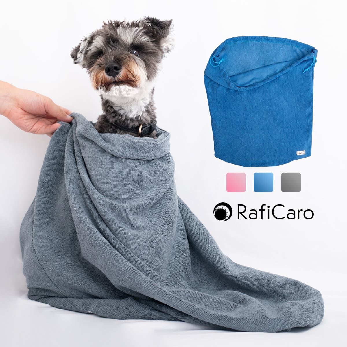 超吸収速乾 洗濯OK 乾燥機OK 飛び出し防止 ペット用タオル マイクロファイバー 巾着型 お手入れ簡単 水ハネ防止 RafiCaro ブランド