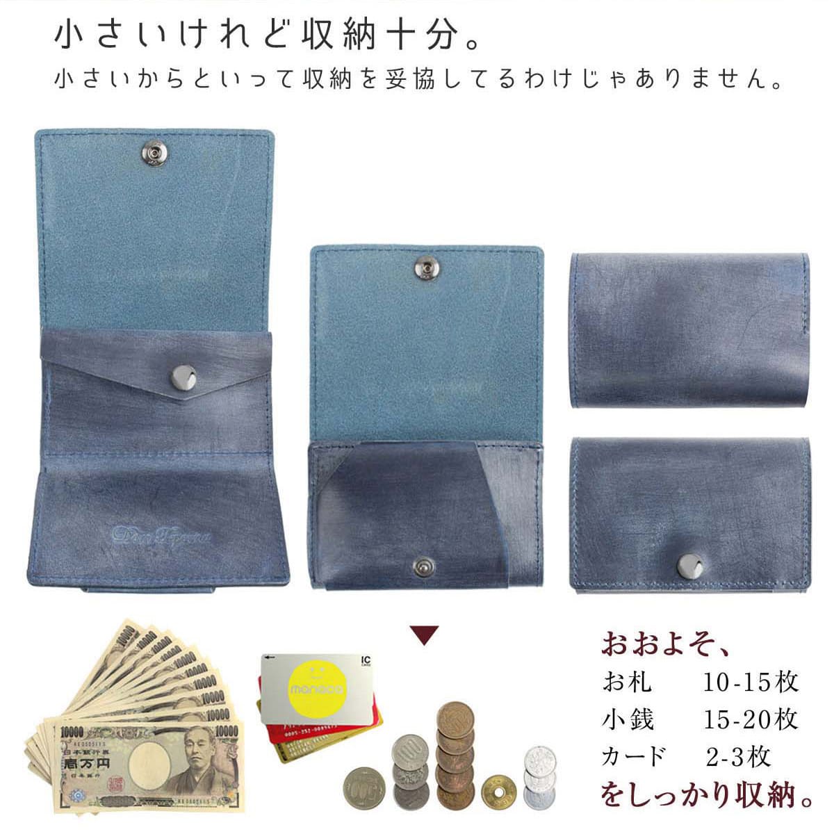 ミニ財布 本革 三つ折り財布 革 メンズ レディース ブランド 小さい財布 コンパクト 小銭入れ カード入れ 牛革 ブライドルレザー 薄型 極小 DomTeporna