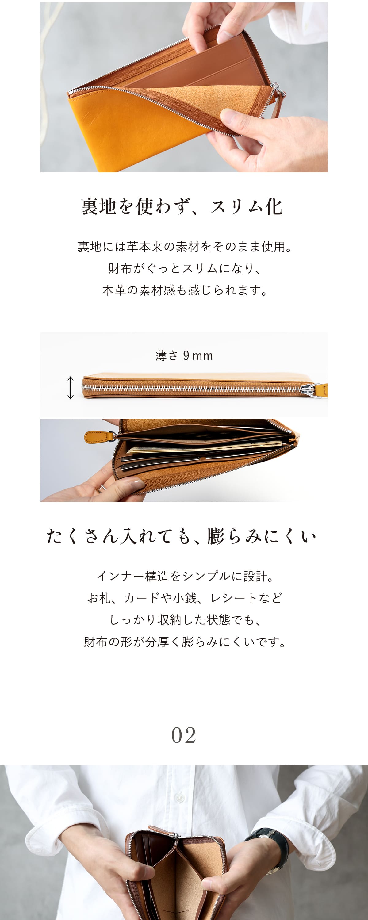 通常の長財布にある小銭入れのファスナーを無くしてスリムにしました。