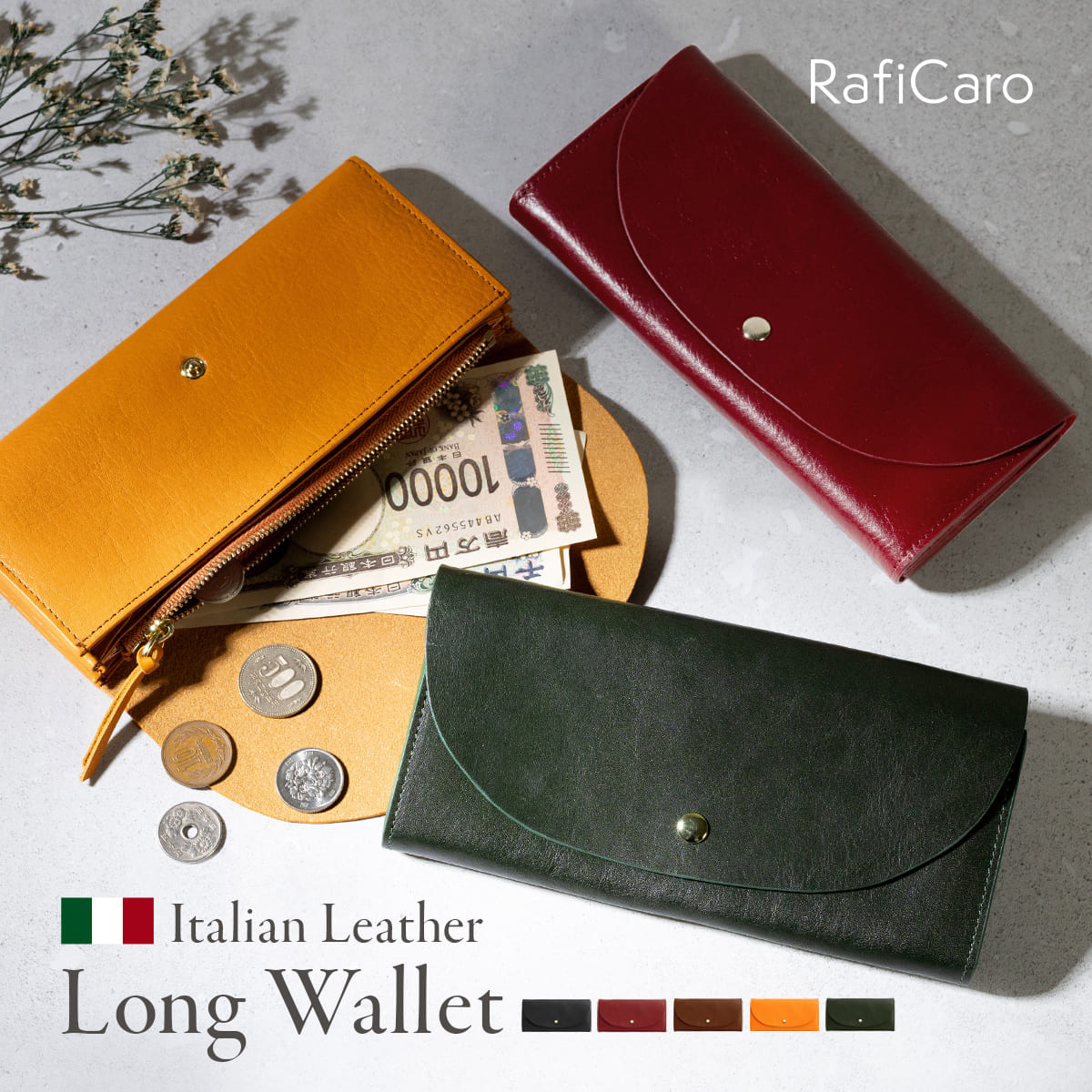 本革 長財布 レディース 財布 大容量 牛革 柔らか イタリアンレザー カード入れ フラップ ボタン留め かぶせ 薄い 薄型 かわいい レディース RafiCaro ブランド
