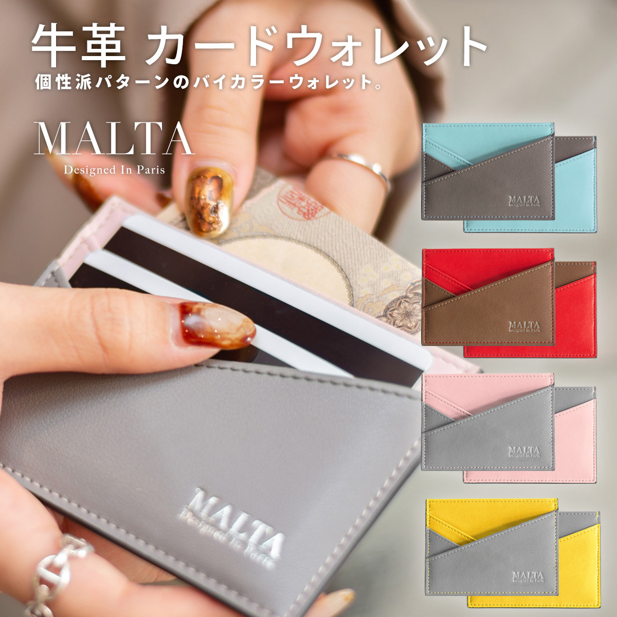 牛革 フラグメントケース ツートン バイカラー カードケース 薄い 薄型 財布 レディース スリム カード入れ レザー 革 MALTA 送料無料