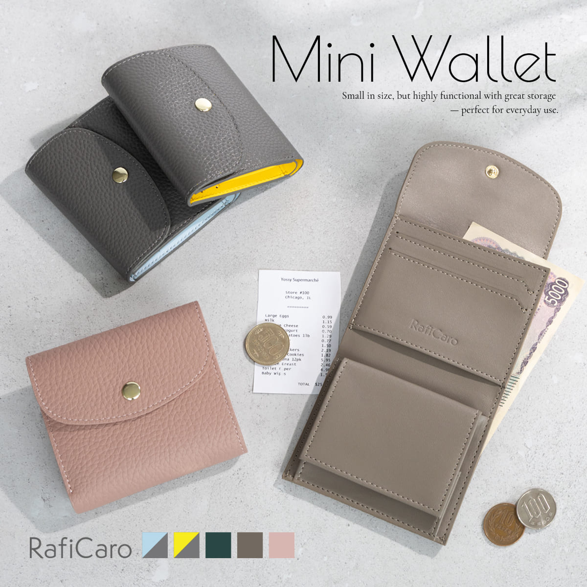 【きちんと収まるミニサイズ】コンパクトなサイズと十分な収納力を兼ね備えたミニウォレットです。使いやすく人気のボックス型小銭入れに、カードポケットとフリーポケットで仕分けもばっちり。お札も折らずに入ります。