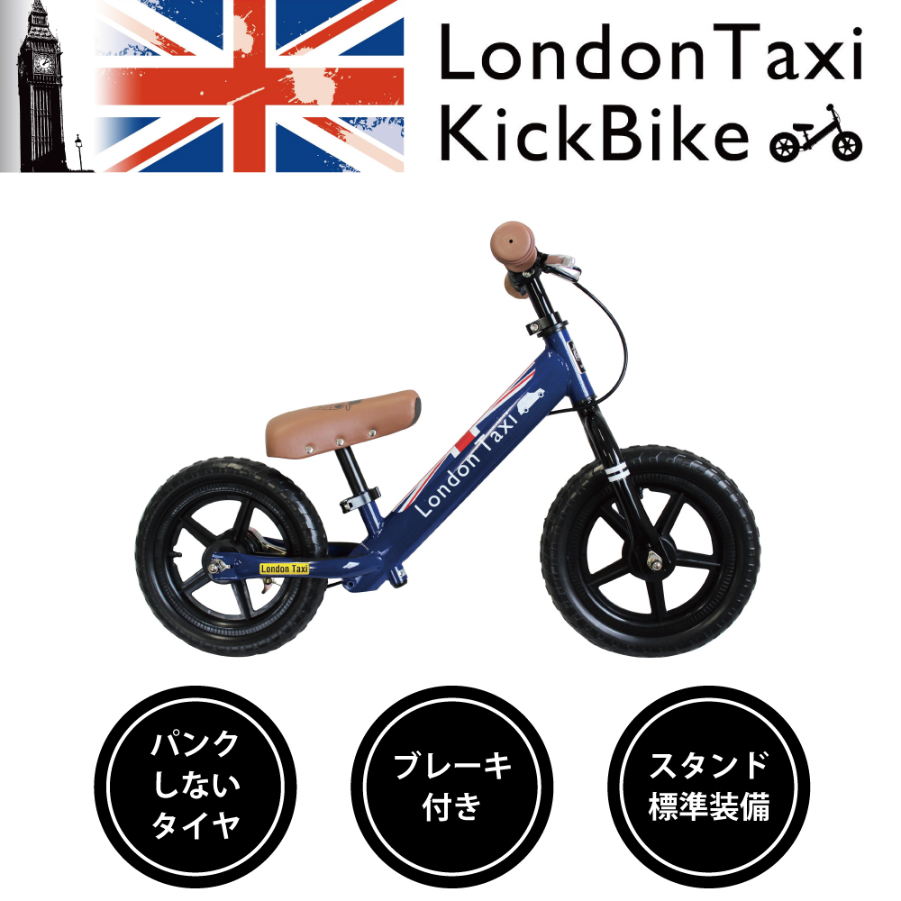 ペダルなし自転車 ブレーキ付 スタンド付 キックバイク ロンドンタクシー プレゼント付 幼児用 ブルー