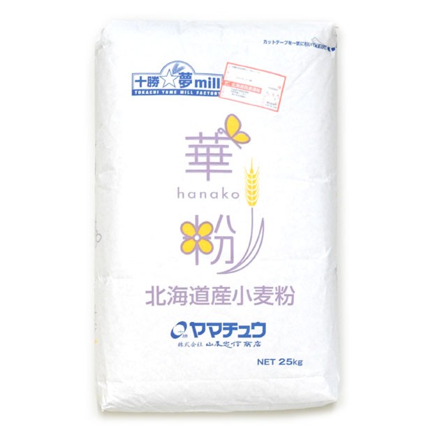 | きたほなみ小麦を100%使用したクッキーなどの焼き菓子に最適の小麦粉です。 サックリとした食感に焼きあがります。 きたほなみは小麦の風味や味が強いのが特徴なので、小麦の特徴をしっかりと出すことができます。 | 内容量 | ヤマチュウ 華粉(薄力粉) 25kg | | 原材料名 | 小麦粉(灰分:0.70 蛋白:11.0) | | 原料原産地 | 北海道(国産) | 賞味期限 保管方法 | 製粉から12ヶ月間 ※風味が落ちますのでお早めにお召し上がり下さい。