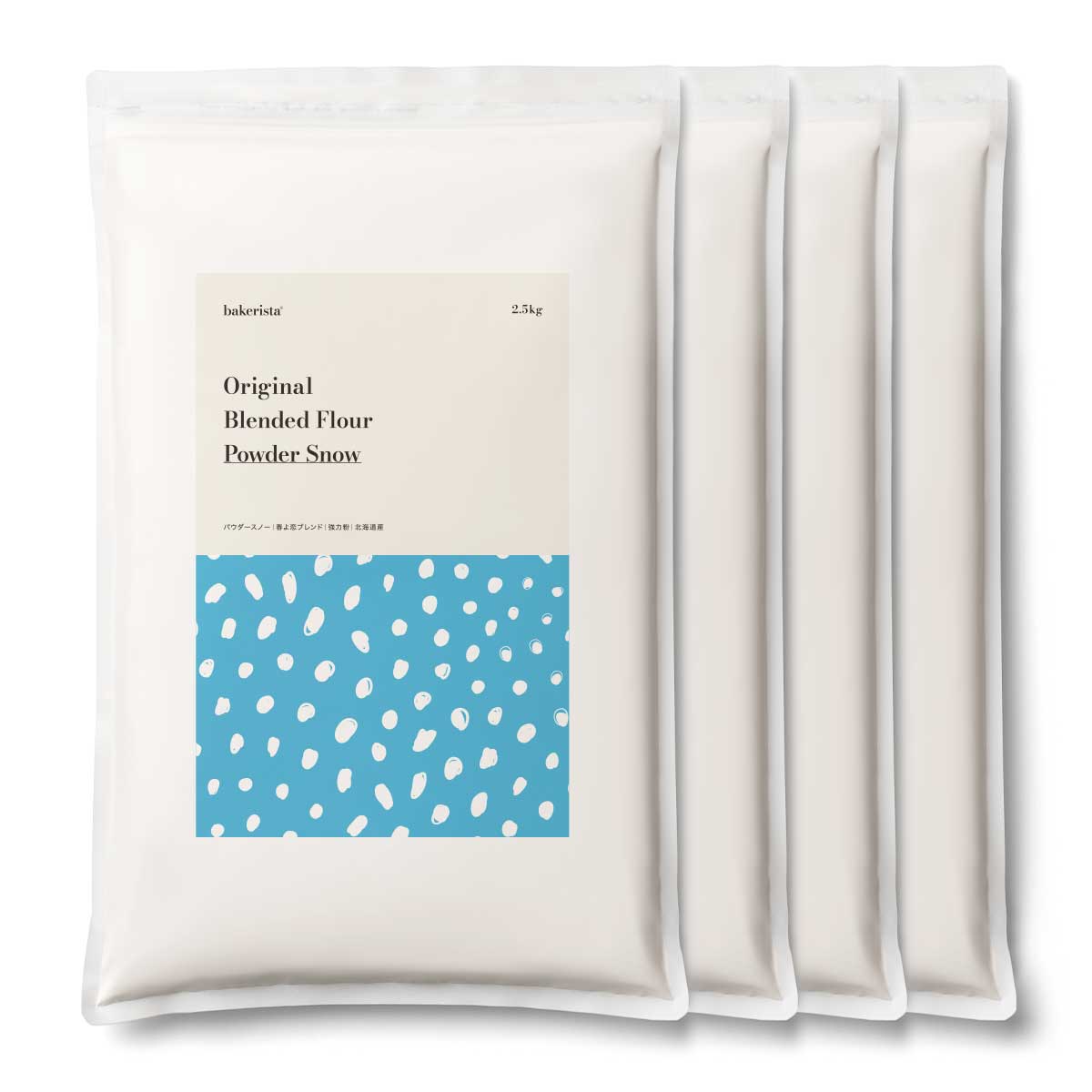 極寒の北海道で降る、粉雪のようなサラサラとした粉質で、水や副材料との混合もスムーズで扱いやすく、ダマになりにくい性質です。