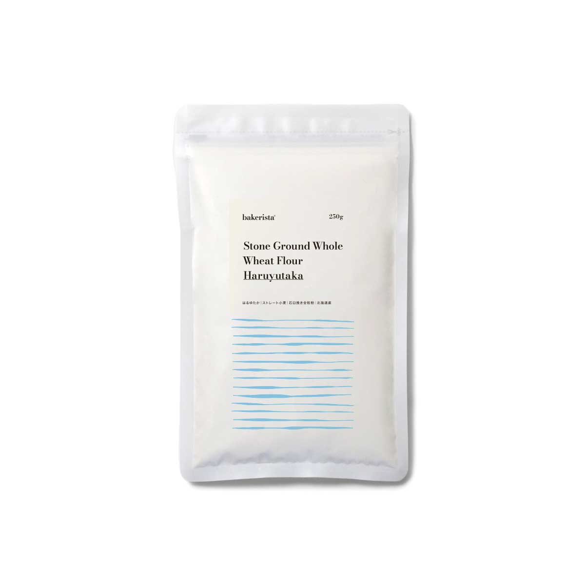 希少な「はるゆたか」を贅沢に100%使用し、石臼で時間をかけて挽いた全粒粉。外皮を細かく仕上げているため、扱いやすくなっています。野趣あふれる風味は抜群です。