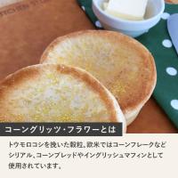 トウモロコシを挽いた穀粒。欧米ではコーンフレーク等の朝食用シリアル、コーンブレッドやイングリッシュマフィンなどパン用としても使用されています。(※トルティーヤに使用するためのアルカリ石灰処理はされておりません)