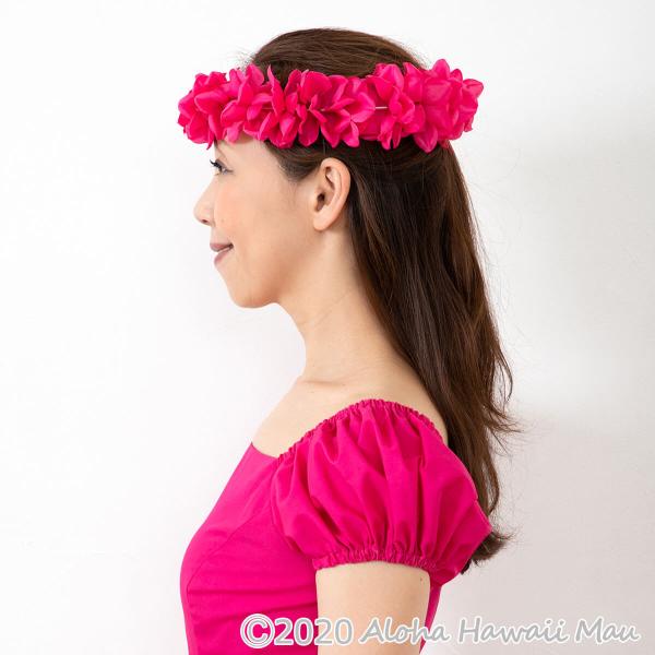 ハワイ規格のヘッドバンドは、ほつれ止め加工を施しておりませんので、花や葉にほつれなどがある場合がございます、また、ひとつひとつ手作りのため、花の付き方が異なる場合や色合い、長さが若干異なる場合がございます。