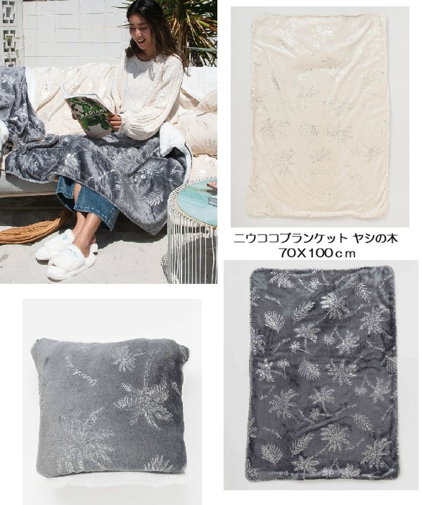 上品なヤシ柄が箔プリントされた大人な雰囲気のブランケットが登場。