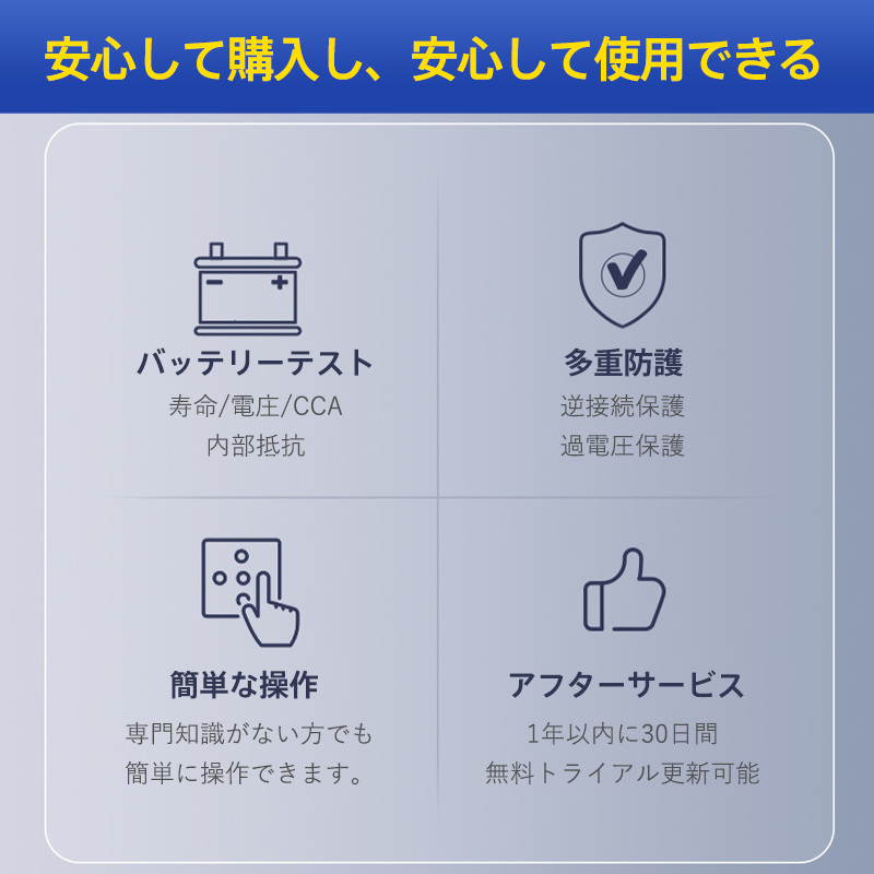 車の健康を長期間保つために、このバッテリーチェッカーで的確な診断を行いましょう。