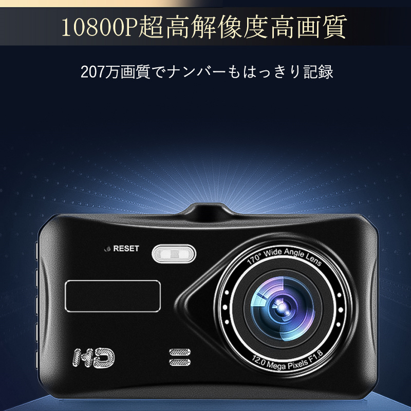 ドライブレコーダー タッチパネル バックカメラ付き 前後 2カメラ 録画 駐車監視 4インチ IPS液晶 フルHD 高画質 1080P 広角170度 防犯ドラレコ フルHD画質 耐熱構造 小型ドラレコ 夜間撮影 ワンタッチ記録 高速録画 操作簡単 一年間保証 あおり運転対策 前後 車載カメラ 小型