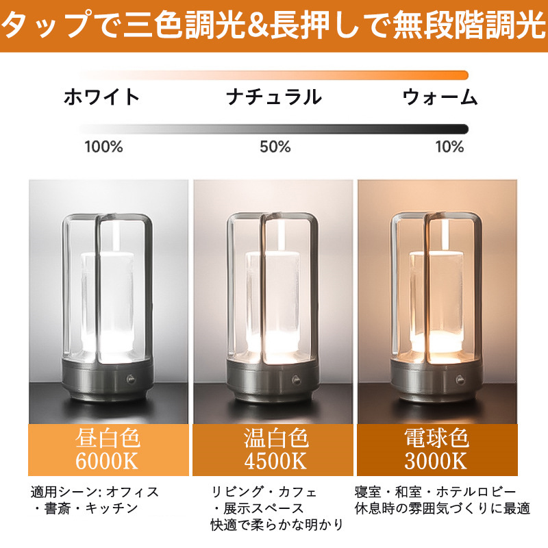 ・タッチスイッチで3色切替(ホワイト/ナチュラル/ウォーム)