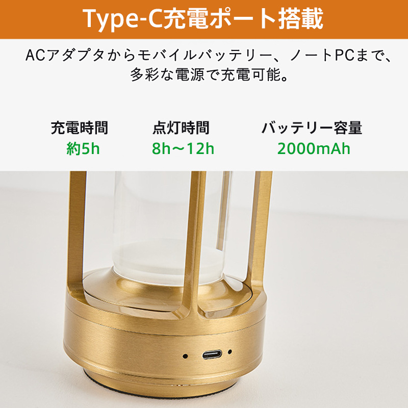 カフェ風インインテリアや野外キャンプ用光としても最適です。