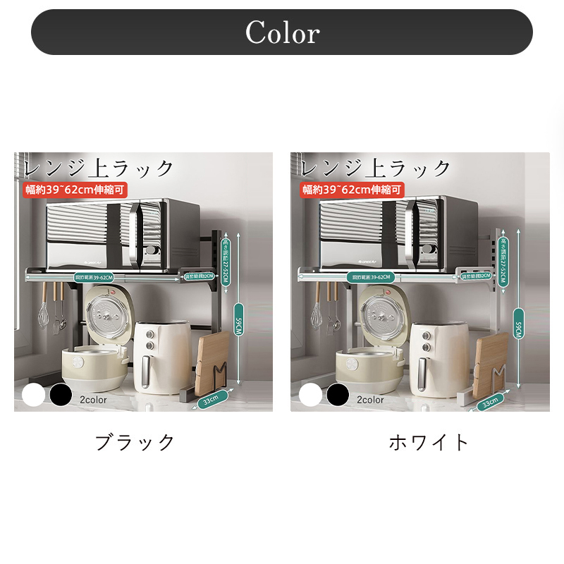 「L型2段式伸縮電子レンジ上ラック」
