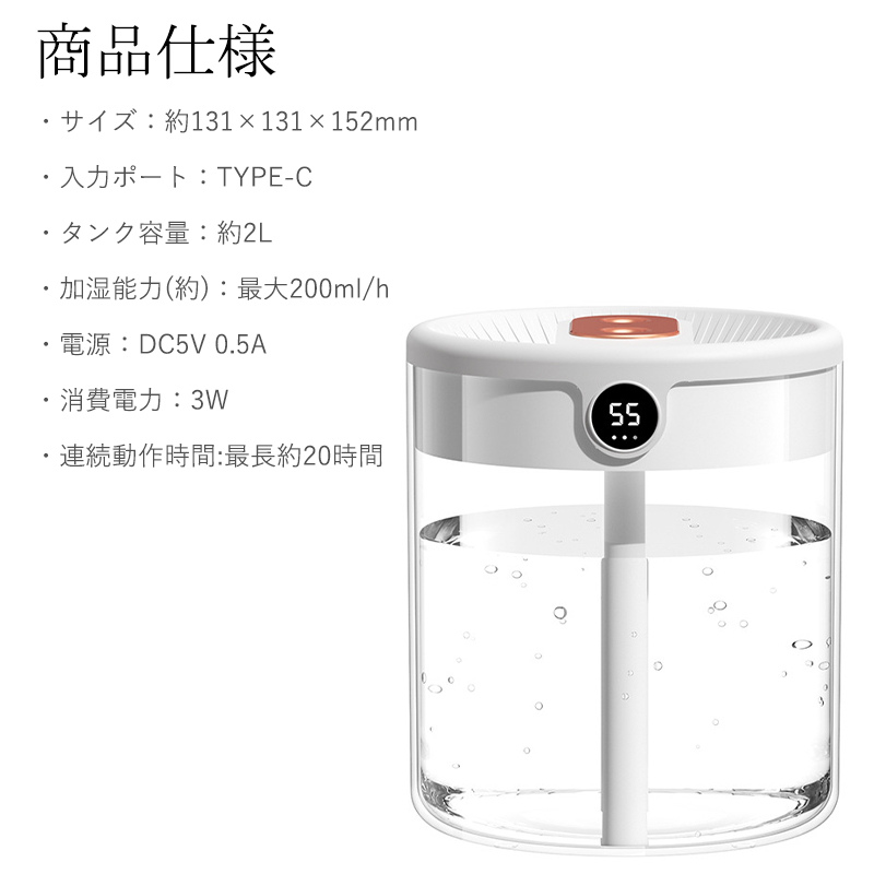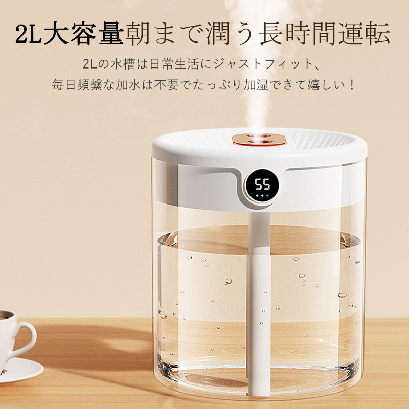 爆買 加湿器 小型 卓上 ミニ 超音波 大容量 2L 除菌 空気清浄機 USB給電式 上部給水式 ダブルノズル アロマ オフィス 部屋 寝室 車用 乾燥対策