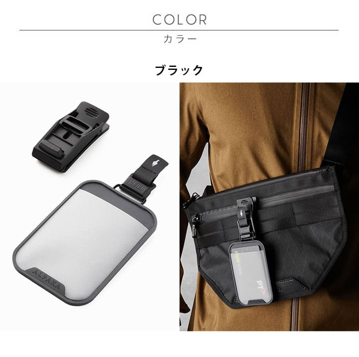 Cardholder単体のご使用はもちろん、HUBクリップが付属しているのでバッグに取りつけたり