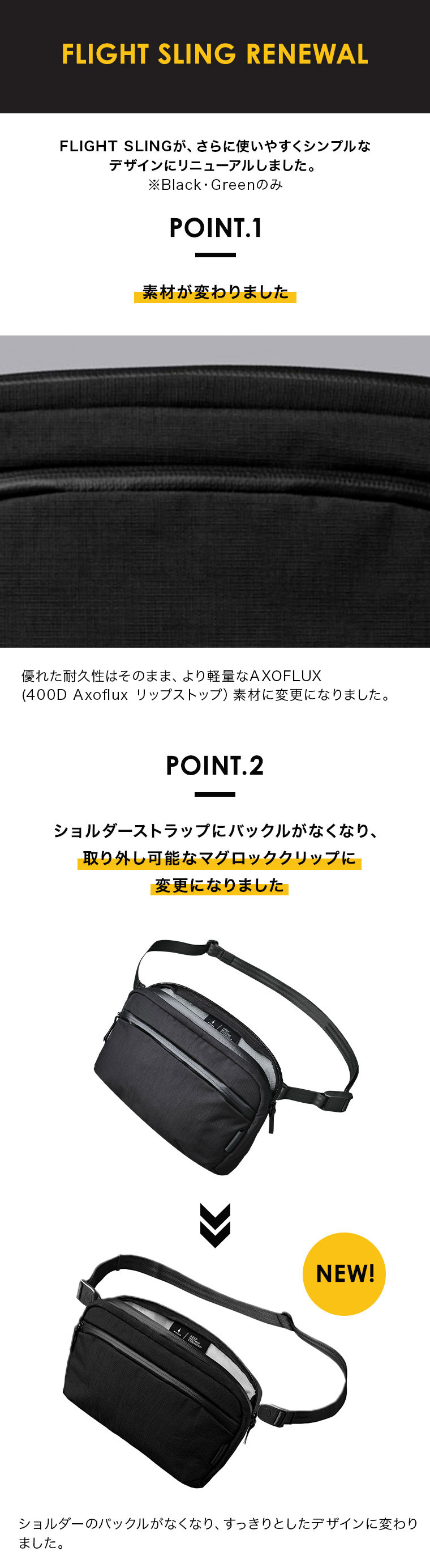 FLIGHT SLINGが、さらに使いやすくシンプルなデザインにリニューアルしました。