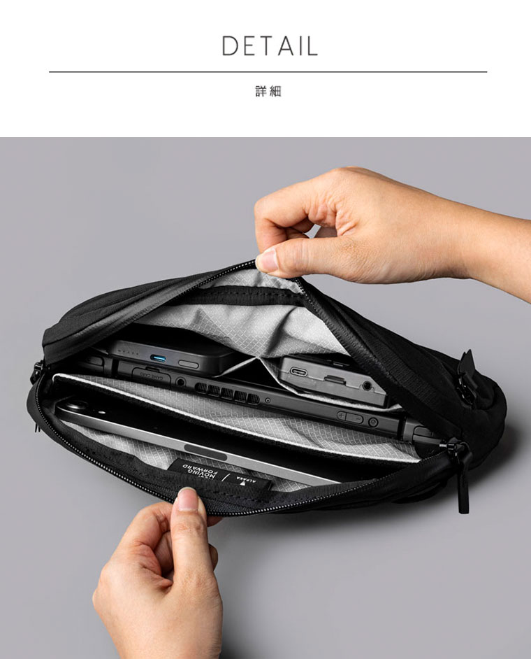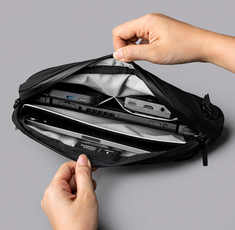 | 旅の必需品を仕分けできるポータブルなスリングバッグ |
