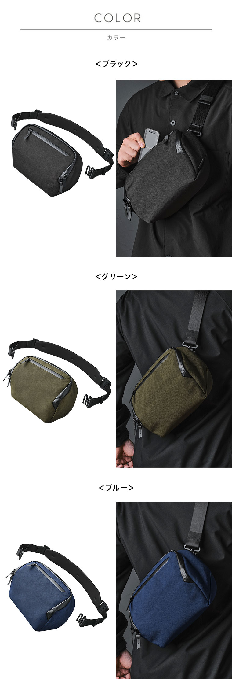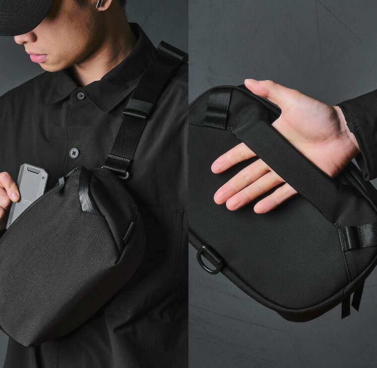 | 必要な小物を分けて収納できるスリングバッグ |