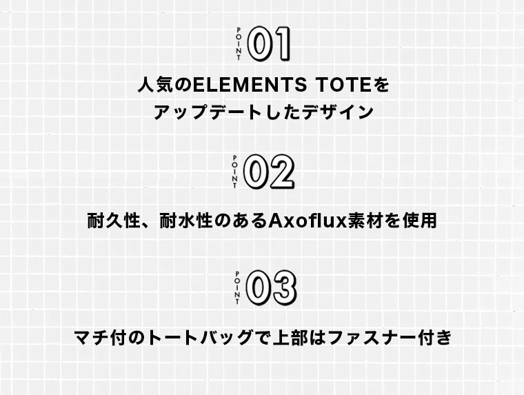 | 人気のトートバッグのJAPAN EDITIONが登場!必需品をすべて持ち運ぶのに欠かせない実用的なトートバッグです。耐久性、耐水性のあるAxoflux素材を使用、毎日使いやすい日常バッグです。 |