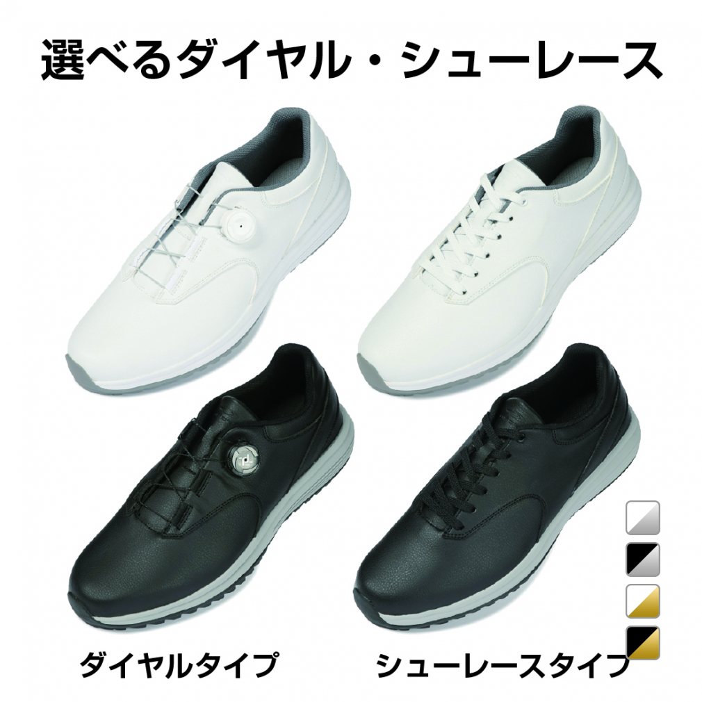 ◇10000回スイングしても、安定したグリップ力! ◇練習場でも長持ちをコンセプトに耐久性のあるラバーソールを開発。芝の上でもしっかりグリップ。 ◇防水仕様の4cm2時間防水。 ◇ワイドラストでゆったり履ける。 ■カラー:ホワイト ブラック ■甲材(アッパー):人工皮革 ■底材(ソール):ゴム底 ■防水機能:有 ■ワイズ:4E ■自社展開サイズ:24.5〜28.0・29.0 ■片足重量:350g(26.0cm) ■生産国:カンボジア ■2025年モデル ※ワイズを確認の上お買い求め下さい。また、足のサイズは甲高、幅等個人差がありますので、あくまで目安としてご判断ください。 アルペン alpen スポーツデポ SPORTSDEPO ゴルフ5 GOLF5 ごるふ5 ごるふふぁいぶ ゴルフ ゴルフシューズ ダイヤル スパイクレス メンズ シューレース ひも ダイヤル