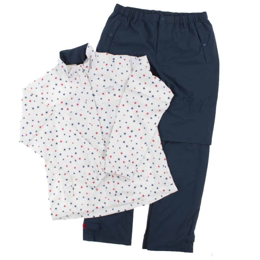 ティゴラ レディース ゴルフ レイン上下セット TR-1R2170S 星の小柄をちりばめた女性らしいデザイン ホワイト×ネイビー TIGORA レインウェア