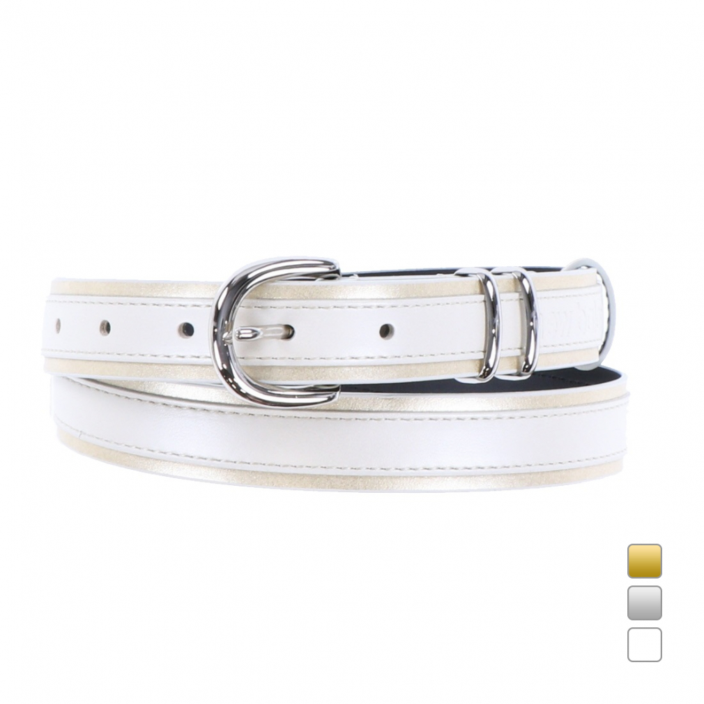 ◇シンプルなデザインでどんなウエアにも合わせやすさ間違いなしのベルト。カラー展開もおしゃれです。 ◇ダブルループ仕様JAPAN MADE ◇カット不可 ■カラー(メーカー表記): シルバー(160:シルバー) ゴールド(170:ゴールド) ホワイト(030:ホワイト) ■素材:本体/合成皮革 バックル/真鍮 ■サイズ: 全長/100cm 幅/25mm ■生産国:日本 ■2023春夏モデル アルペン alpen スポーツデポ golf_ap_9999 ゴルフ5 GOLF5 ごるふ5 ごるふふぁいぶ ゴルフ ベルト ベルト レディース レディ LD 23fwcl