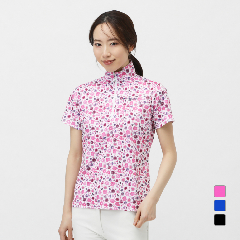 マリ クレール ゴルフウェア 半袖シャツ 春 夏 半袖ハイネックシャツ 714603 marie claire