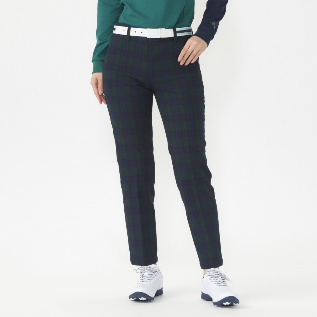 ◇生地の織りでチェック柄を表現しました。裾にかけてスッキリ細くなるテーパードシルエット。横方向に非常に伸びが良く、アドレスやスウィング、ボールのピックアップなどゴルフ特有の動きにもストレスを感じにくいめちゃ伸び素材。ウエスト部分に伸縮性を持たせた楽ラクウエスト仕様。 ◇機能:楽ラクウエスト、ストレッチ、撥水、UV、メチャ伸び ■カラー:ネイビー×ブラック ■素材:レーヨン72% ポリエステル24% ポリウレタン4% ■サイズ: 64(9)LD:対象ウエスト/64cm 67(11)LD:対象ウエスト/67cm 70(13)LD:対象ウエスト/70cm 73(15)LD:対象ウエスト/73cm ■生産国:バングラデシュ ■2024秋冬モデル アルペン alpen スポーツデポ SPORTSDEPO ゴルフ5 GOLF5 ごるふ5 ごるふふぁいぶ ゴルフ ゴルフウェア ゴルフパンツ ロングパンツ 秋冬 レディース レディ LD 【bg_l_pt】 【70cm以上】