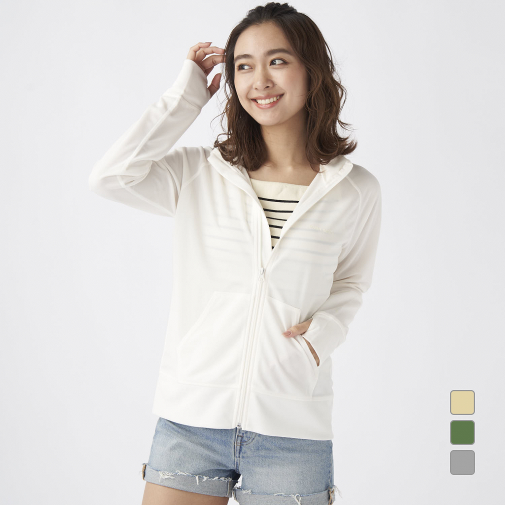 ◇定番の人気のラッシュガード。従来よりカノコの目を細かくして高見え素材にグレードアップ。フードは取り外し可能でフード無しでも着用可能。