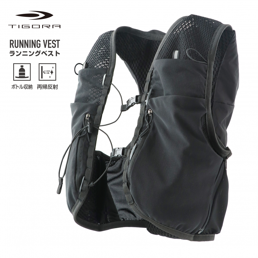 ティゴラ 陸上/ランニング バッグ ベスト 8L ペットボトル収納 サイズ調整 フリー ランニングベスト フリーサイズ ブラック TIGORA