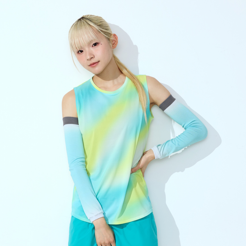 ティゴラ レディス 陸上/ランニング ノースリーブシャツ アイドライUVカットランニングノースリーブ TR-3R2226NS : サックスブルー×イエロー TIGORA