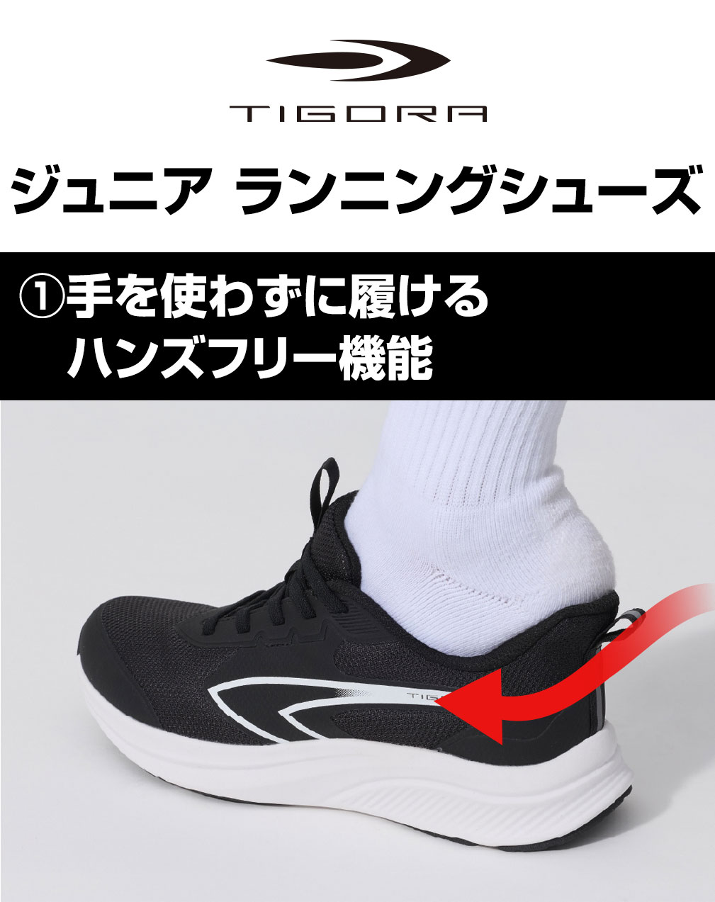ティゴラ ジュニアランニングシューズ II TRJ4016 3E ハンズフリー キッズ シューズ 子供靴 子供用 靴 スニーカー 運動靴 キッズシューズ TIGORA