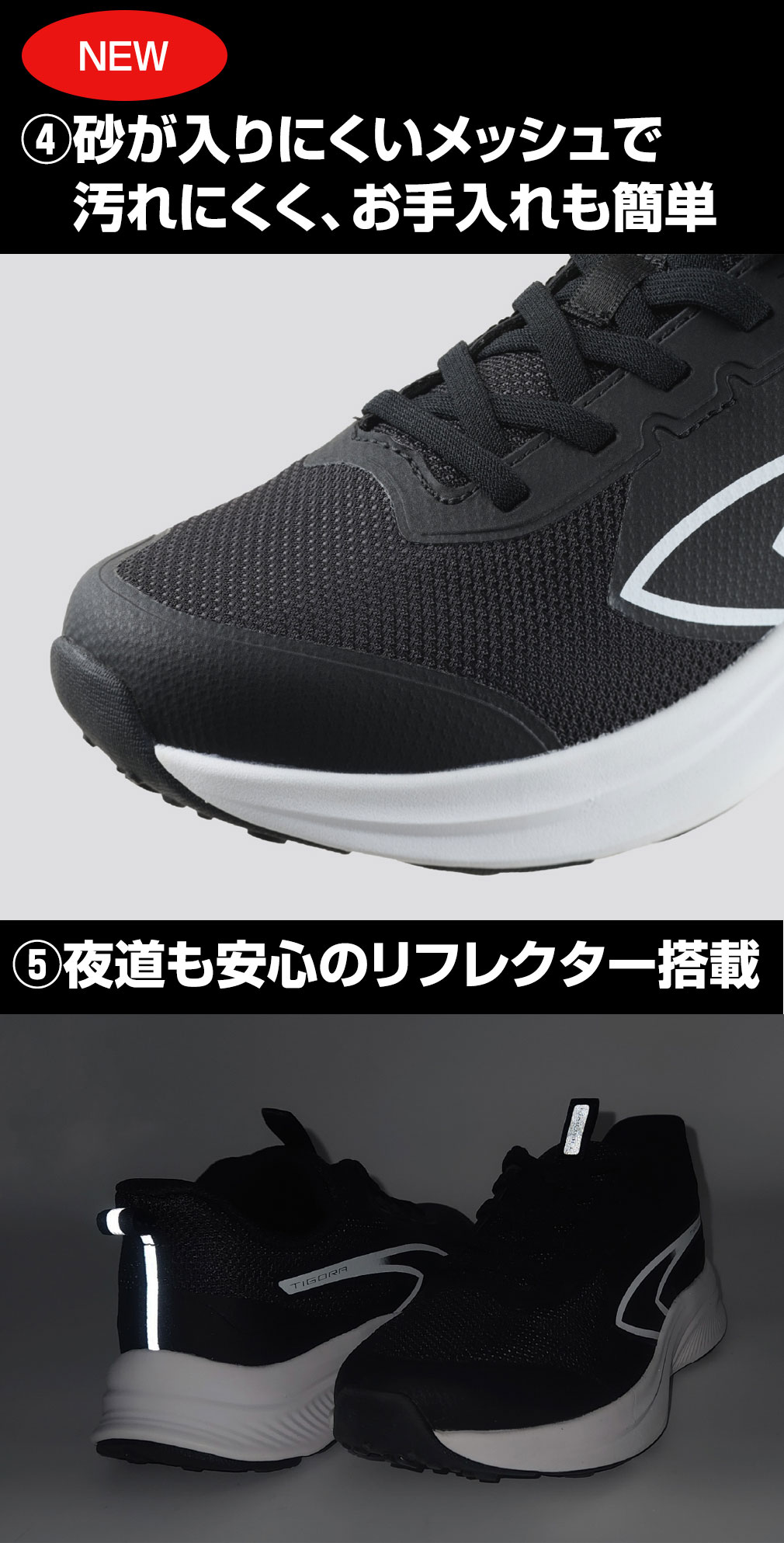 ◇汚れにくく丈夫な「シームレスメッシュ」。砂が入りにくい細かなメッシュと縫製の少ない設計で、耐久性が高くお手入れも簡単。